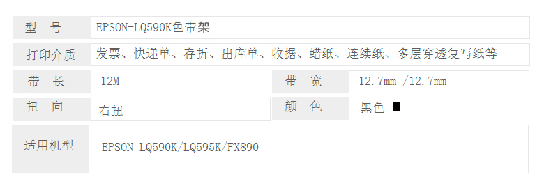 凱欣 KX-LQ590K 適用愛普生EPSON FX890 LQ590K LQ590KII LQ595K S015337 C13S015590打印機(jī)色帶架含芯 全國統(tǒng)一價(jià):33元