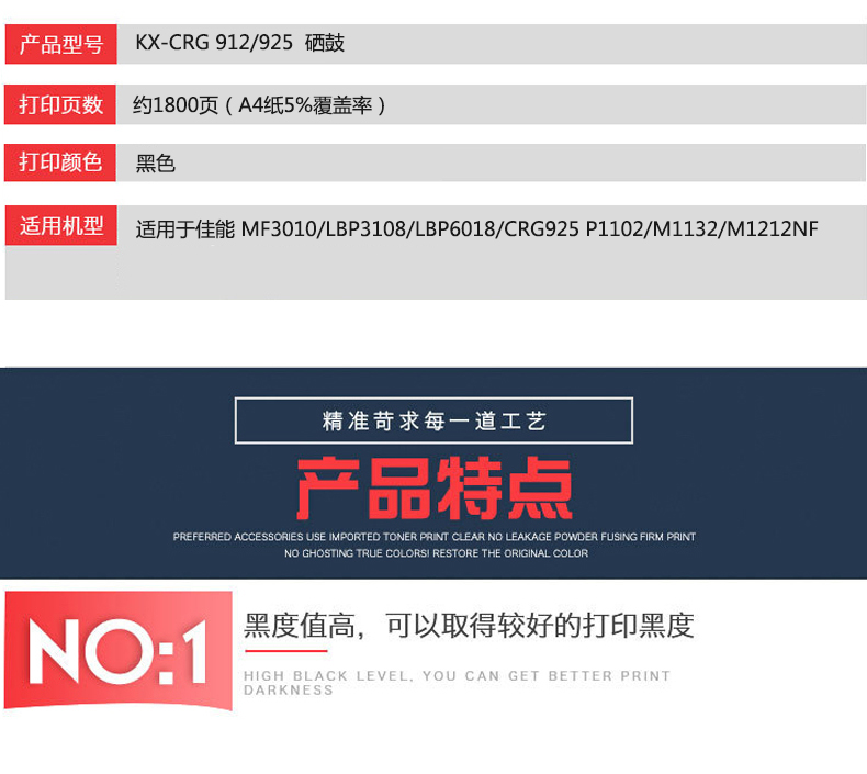 凱欣標(biāo)準(zhǔn)版 KX-CRG912/925硒鼓 適用于佳能 MF3010/LBP3108/LBP6018/CRG925 惠普P1102全國統(tǒng)一價:126元